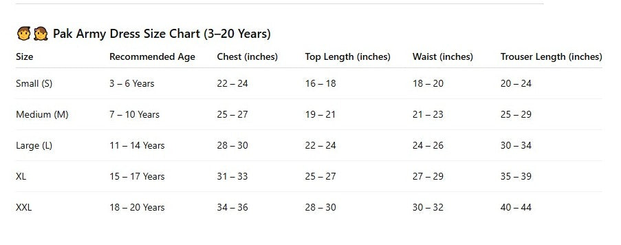 Pak Army dress for kids